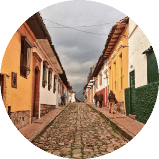 Muchas de las locaciones icónicas se encuentran en el centro y su mágico barrio de La Candelaria. Si hay un lugar para descubrir los orígenes de la ciudad es este: casas antiguas, iglesias coloniales y museos. Caminar por sus calles es toparse con carretas de comida puestas ahí para deleitar todos los gustos. El clima que cambia por horas permite que en un día soleado uno se deleite con un jugo fresco o un trozo de fruta recién cortado y en un día frío se reconforte con una deliciosa agua de panela con queso o un ardiente chocolate santafereño. Bogotá es un crisol de experiencias deliciosas.
