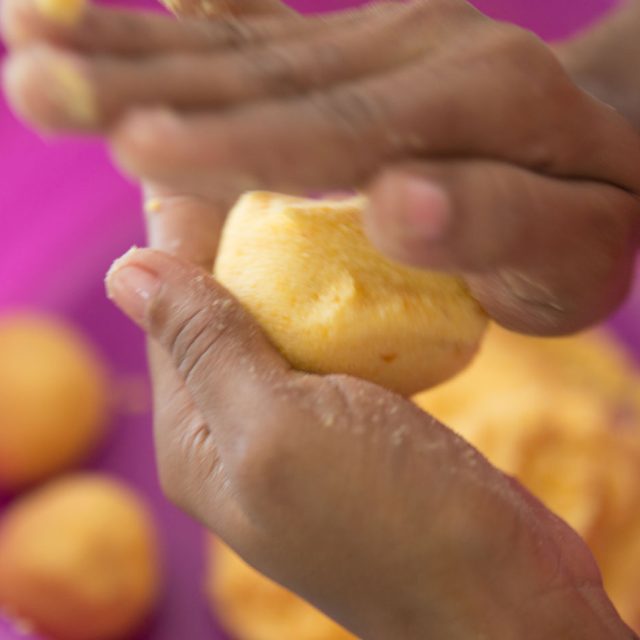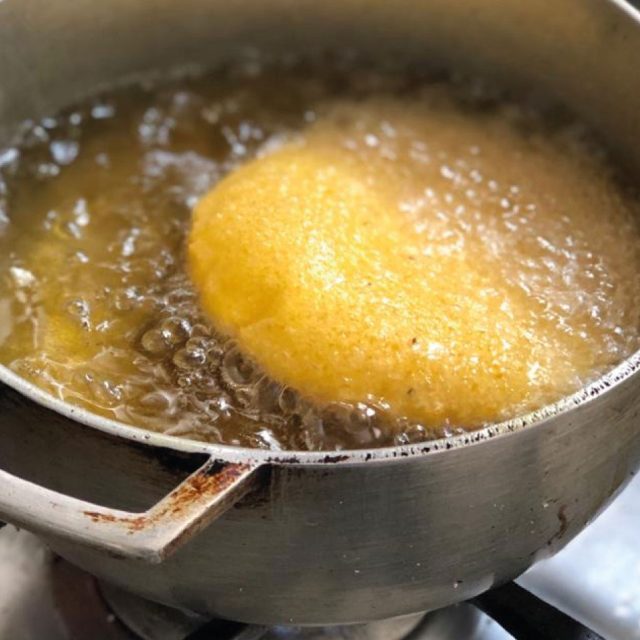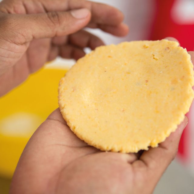 Es una arepa preparada con maíz amarillo, parecida a un sol, que siempre se puede encontrar en las mesas de fritos de cualquier esquina y en las afueras de las fiestas de picó donde la gente se junta en torno a la champeta y la salsa brava para celebrar con pasos de baile y calderos llenos de frituras, nuestras raíces africanas.